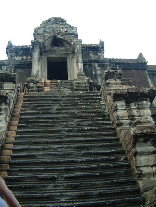 ←中央の5つの塔がある第三回廊は、現在修復中のため見られません。でもこの階段てほとんどタテ…「見られる時はみんなこの階段を登るんですか?」「はい」一同ドヨメキ(笑) 神様が登るためのものだからこれでいいんだって…