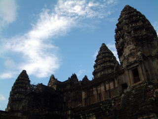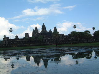 えーワットとは寺という意味ですが、アンコールトム(大きい都市)に対してということで、これは後から付いた名前だそう。 12世紀にスーリヤヴァルマン2世が造りましたよ。他の遺跡は皆東を向いて建てられてるのに、なぜかここだけ西向きなのは、お墓として造ったからだろうという(西方浄土)。だからトムとか他の遺跡は午前中に見るのがいいけど、ワットは午後がいいらしい…。光の加減かなんかで。