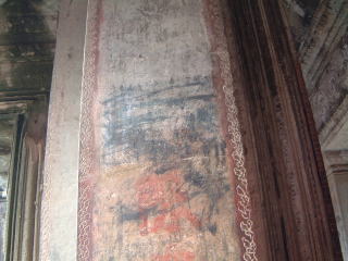今のとこが中心部だったんで、また外に向かって…下左は、十字回廊てとこにある、昔のニホンジン(森本右近太夫一房・17世紀)の落書き。黒い部分に縦書きしてあるのを、上からいったん消してるのですが、それでもこれはまだ文字がなんて書いてあるか読めるんだそうで… 他の柱にも中国人の落書きとか、日本人らしいんだけど読めなくてわかんないのとかあります。