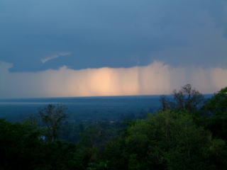 ゆるやかな坂を15分ほど登って、そこも遺跡(9世紀)があんだけど、その上から夕暮れをみんなで待つ…。でもこんなもんで(下右)いまいち何がなんだか…