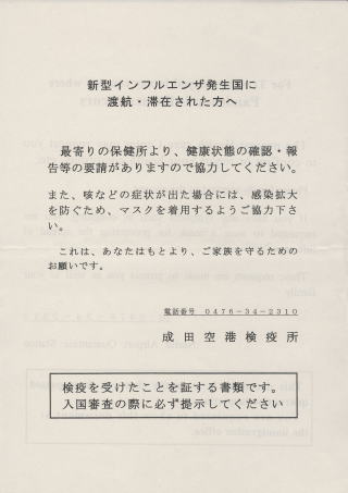 7:30到着予定が少し早くなって7:10成田着、ヘルスチェックの検査質問票を書いて、それをパスして渡される右下の紙を持ってないと入国できませんよ(汗)