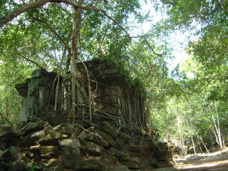 ここはタプロムにも増して、ジャングルに埋もれてガジュマル侵食しほうだいなうえに、大丈夫地雷はすべて撤去しました!ってあったんかい!(汗) 実際外国人に開放されたのは2001年て最近…