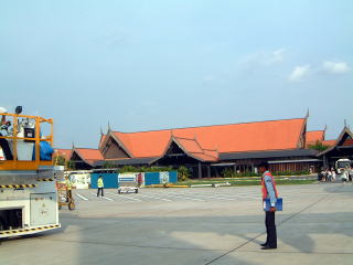 シェムリアップ空港は右上のように、伝統的建物風なのだ…(到着時は夜だったので今撮る)
