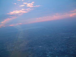 15:30には着いてたので、お土産買ったりしてぶらぶらっと待って、17:30発、右中の黄昏はもうホーチミン近くです。すぐ着くのであまり高い所は飛んでないみたい、ずっと下の景色が見えてたから… 18:30ホーチミン着、こっから乗り換えがなんと0:05発なんですヨなが〜。しかし乗り換え口の指示が少し混乱して、たぶんそれでご迷惑かけましたってことだと思うけどお食事券をくれたので、それ使ってばんごはん食べたり、お土産も見たけど、あとはひたっすらDS。(でも最終的にチャプター3までしかいかなかった。全然進んでないじゃん)