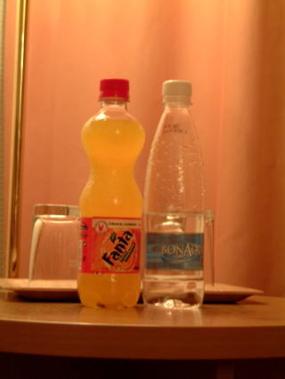 →ファンタの500mlペットはこんな形。水はたしか地域によって硬水とか軟水とかあんだよね…とりあえず買ったコレは日本と同じでOK。