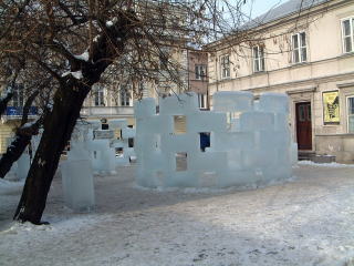 さて今回の旅行で、予想してたことではあったんだけどキツかったあ!のが寒さ。たぶんねえ、日本でゆうと青森ぐらい寒いんだよ(行ったことないけど青森)だってホラ!車につららが出来てんだ(上左)!つららはウィーン以降どこでもあったけど(なにしろどんどん北上するもんですから)上右はワルシャワ。ちょっとした広場に、このような氷の芸術が…。何かの発表会というわけでもなかったみたいなんだけど、人々が足を止めて写真撮ったりしてました。そんで私本文中にも書いたけど足が…膝がもーちょー痛くってさあ。階段とかあると「うっ」てかんじ。しかしホステルとか安いとこはたいてい3階とか4階にあんだよね…しかも3階ってゆうと、日本でゆう4階なんだ1階はグランドフロアつって数に入んないんで。うー。今思うと医者に駆け込んでても良かったくらいなんじゃないのかってゆうね…どうせ旅行保険入ってるんで…(クレジットカードに勝手についてる)でも我慢しきってしまいました。