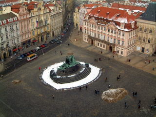 ←同じく旧市庁舎から見下ろす旧市街広場のヤン・フス像。ヤン・フスて独立の英雄?の人ですね…