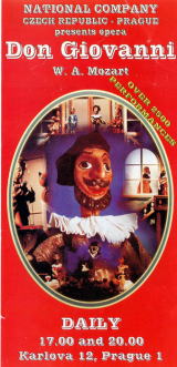 ブラックシアターという、マリオネットショーがあちこちでやってるのです。ドン・ジョヴァンニがいくつかやってて、「モーツァルトのプラハへの贈り物」とかコピーがあって、モーツァルトがプラハでこの作品を書いたとかいうことらしいです…たしか(汗) 観てみました。1時間半くらい、5人の男の人で熱演。…ここここでも学生料金で観てしまいましたあ(涙)