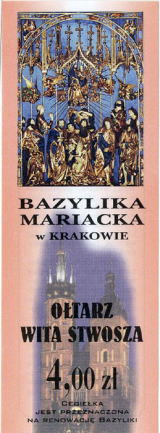 下は聖マリア教会。今まで見た中でいちばんキレイな教会でしたです。日本語説明書(けっこうがんばってて間違いがほとんどない)あり。ポーランドは観光客用のパンフがけっこう各国語揃ってる。でここは毎正時ごとにラッパが吹き鳴らされるんだけど、途中でブツ切れるのです。そうゆう史実?伝説?に基づいて。あとどっかで毎正時の鐘の音も…(こっちのが遠くまで聞こえる)