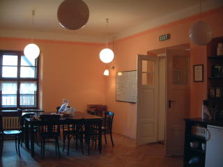 今日のお宿は、クラクフ駅のお泊り紹介所で教えてもらったホステルで、中央広場のすぐ入ったとこで、安いしシャワールーム個室できれいだしグゥでした。ただしそんなに大きくないのでドミトリー(6人相部屋)は男女区別なしだっていいのか?(汗)たぶん他の人女の子ばっかだったから、男の子一人だけ来てこうなっちゃった気がする。つか私入ったらその男の子ともう一人女の子がそれそれ爆睡してて(まだ夕方4時頃だったんだけど)。が!それで下の写真のおされなキッチンとか好きに使えて(パンとジウスはついてる)1.800円ってすげー!