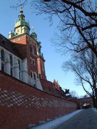 3/2。も少しクラクフを見まーす。旧市街広場から少うし南西に歩いたとこにあるヴァヴェル城。上↑はパンフ、右→が入り口。プラハ城よりは敷地はやや小さめかな…でもこれも少し高台にありまして、旧王宮や遺構(今の形になるよりも前のお城の跡)を見るためにはチケットを買ってね。というパターンで。私が見たのは旧王宮のガイドツアーと宝物・武具博物館と遺構。けっこう時間かかったけどこれがまたすんごい良かった。旧王宮はふつうに見てね、という部分もあんだけど、王族の私室も見たかったらガイドツアーのみなので、そっちにしたら、これってある程度人数集まったとこでやるじゃん、したら米軍御一行様と一緒になってしまい…(汗)でもめっさ豪華だったです。 武具博物館ももりだくさんだった。中世の鎧とか剣とか、鉄砲とか大砲とか…。遺構も良かった!発掘したままの所へ通路が作ってあって渡って行きつつ間近で見れるんだ。朝イチで急襲したので私しかいないしねえ。