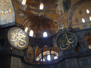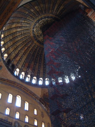 アヤソフィアは寺院と言ったり大聖堂とも言ったりして、てのはキリスト教の大聖堂だったけどイスラムの寺院に改修(とゆか改宗)されてたり、ただ造りはまるきりモスクなんだけどなあ。そのへんの事情からイスラム式ありキリスト教式あり。融合というよりは混在という印象。ここはとっても良いオーラの場所というのを前聞いたんで期待してたんだけど、うーん誰もいない空間にぽつと立ってみればどうかわかんないけど、私の感受性では観光名所以上のかんじはなく…前行った花巻の宮沢賢治の家跡の方が清浄とゆうか特別な空間に感じたよ(笑)あのぽかっとしたホッとするとゆうか…瞑想とかできそうな(まあたまたま天気良かったりとか人いなかったりとかゆう条件のセイかもですがー)。