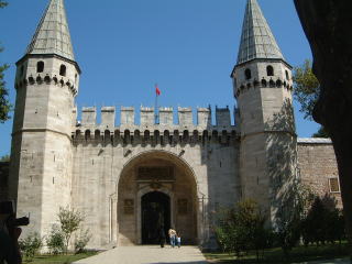 さあ続きまして、左上のようなおステキな木立を抜けましてトプカプ宮殿へ向かいます。なんか入り口前の広場激しく工事中だけど…実はアヤソフィアの脇から来れる道もあんだけど、そこは欧米人観光客の波にもまれるので(笑)こっちの道はホント人いなくて、しかもわりと長いし見通しもきかないのでやはり途中で不安になるらしく、帰り道向かいから来た人に「こっちトプカピ宮殿?」て聞かれたり。ええそうですけどその人達ってイスラムの黒装束の女の人2人連れで、イヤ私に聞くより君達の方がむしろ地元民では。と心の中つっこみ(笑)