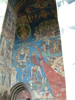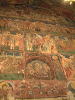 次々回ってる間は整理できなかったので、スチャバ駅に戻ってじっくりチェックしてみますと、ヴォロネツへ行ってないこと判明。ここはヴォロネツの青という有名な傑作が…とかガイドブック書いてあるし、ぜんぶはしょってタクシーで行ってばっかじゃ何なんで、ここはひとつ地道に公共交通機関で行ってみやう。どうせ今日いちんち修道院のつもりなんで時間もあるしね。