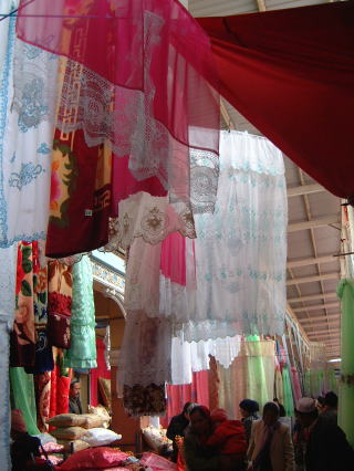 この日って朝から観光始めてるからけっこう時間あって、さあバザールへ。人多くて撮りづらかったけどなんとか左のを。カーテン?きれい。あとはショール、パシュミナとか食べ物とか日用品…子供向け文具が面白くて見てたけど、汚れすぎてて買うにはちょっと。