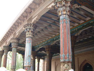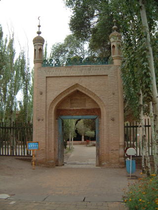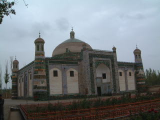続きまして香妃の墓へ。緑色のタイルが珍しくてよいです。←このイスラム式のドームの中はキホンひとつの部屋で、香妃はじめ一族の棺が連綿と並ぶ空間。同じ形式のを前にも…スレイマニエ・ジャーミー(イスタンブール)の霊廟か。棺の中にはでも何もなくて、各々の真下、地下に遺体(とゆうかミイラ)があんだって。当然写真厳禁。周りはちょっとした庭園風で、同様式の建物もいくつかありますが、いかんせんすんごい傷んでて、崩れて使えてないと思われるものも…