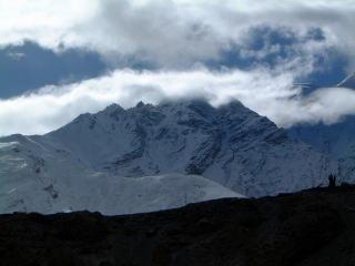 ここらへんはカザフスタンとかとの国境に近いので、中国軍の検問所とかあるですよー。バス降りて一人ずつ検問所通ってパスポート見せる。一旦向こう側行ったら戻って来ちゃイカンかったらしい(戻った人)…でも晴れてきて、右上は検問所の反対側(検問所じたいは撮っちゃいけない当然)だけど山が雲がいいかんじに。