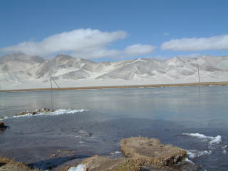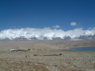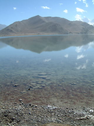 ←ハイそして遂にカラクリ湖到着です。誰か激しく行いのいい人がいたらしく(私ではない/笑)、地元民でもここまではなかなか晴れないと言うくらいくっきりお向かいの山(ムズターグ・アタ、7,500m)が見えてラッキィ。どんな晴れても頭に雲がかかってたりすんですって。湖の水も透き通っててすごいきれいです…
