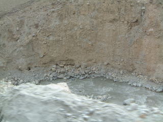 道沿いの下の方に流れる川がゲズ川とゆって、ゲズとは灰色のこと。ホントに灰色なんだフシギなくらい(左下)。右下は隊商宿跡って遺跡?