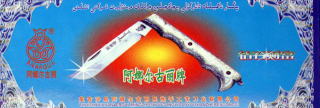 カシュガルに別れを告げまして、ホータンへ向かいます。途中ヤンギザルは小刀が特産?だそうで、右上は店内。買っても空港で引っ掛かってどうせ持ち帰れないんじゃないかと思ったけど、そんな大きくなきゃいいそうで、でも予算とかあるからすんごい小さいの買ってみました(右中は箱の蓋)。刃渡り5cmの折り畳みで40元(¥700)…刃にウイグル文字の刻印がつくのが特徴で、爪切りだともっと安いけどこっちは刻印つかないので…