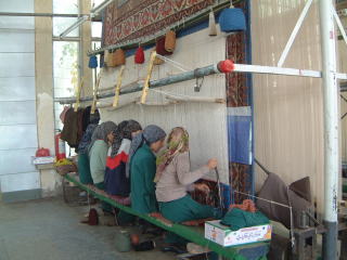 さて次はじゅうたん工房でっす。前にも…エジプトか。見たけど、上のように一列に並んで均等に進むように織っていく。スタンダードな赤や青のものより、最近は染めないナチュラルカラー(薄い茶系)のが人気だそう。