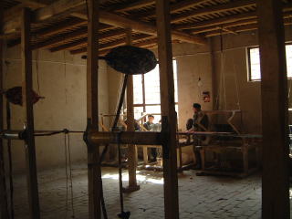 続いてアトラスシルクの工房へ。手染め手織りのシルクを作る工程が順を追って展示(とゆうかそこで実際人が働いてる)されてます。左上はまゆの紡績?煮込んでます。左中で織ってるんだけど、わかるかな向こうからこっちに織れた布が渡されてるの。暗いとこで、魔女のようなお婆さんもいれば10代みたいな若い子もいて、フシギだ…