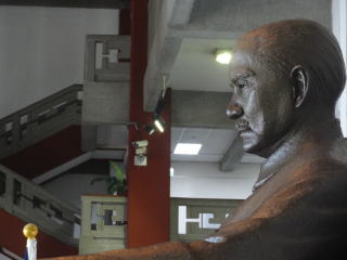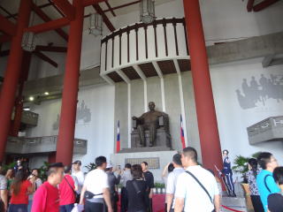 国父とは建国者孫文のことで、左写真の入り口すぐに大きな座像があるのです。(像5.8m+台3.1m) 2階の回廊からだとけっこうアップの写真が撮れます↓。