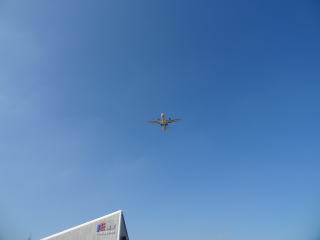 車道を渡る高架橋があるのですが、その上をちょうど飛行機が!左下の写真は小さいプロペラ機だったんでそうでもないかもですが、その前に旅客機が同じルートを通ってって、すごい近くて迫力でした。