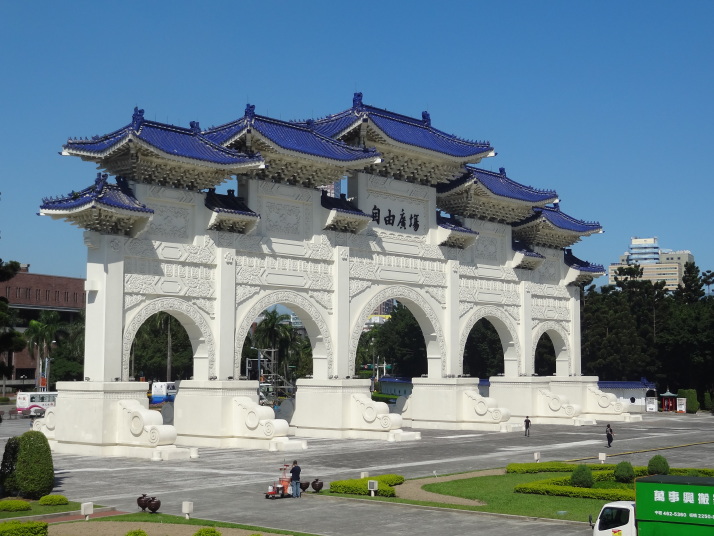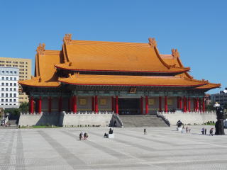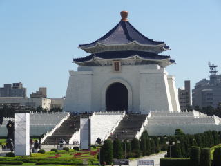入り口として左の大きな門があって、真正面に中正紀念堂(左下)、両脇に国家戯劇院と国家音楽堂(まあ劇場とコンサートホールだよね。右下、2つとも同じ造り)が配され。天気良かったせいもあるけど白とか映えてすんごいきれいだと思ってたら、出来たの1980年だって。まだそんなに経ってないんだ…