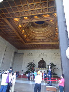 国家戯劇院とかはこの時間は何もやってないらしく、中は見れなかったんだけど(なぜかダンスの練習をする学生ぽい人々がたくさんをり)、中正紀念堂は階段登って見て来ました。6.3mの蒋介石像(こちらも座像)。孫文記念館でもあったけど礼兵がいて、交代式とかもあるらしい。見なかったけど。